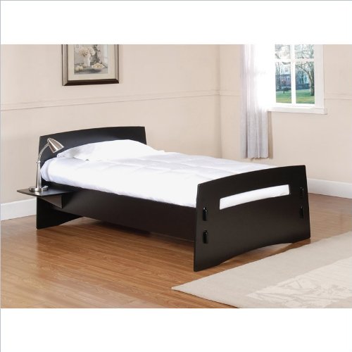 Easily change the look of your bedroom decor with the Titanium Black Reversible Standard Twin Size Bed by Legare. This modern Twin Bed design features a versatile headboard and footboard that can be reversed for either a cool Titanium or classic black laminate configuration. It perfectly complements other Legare reversible finish desks, bookcases, and media furniture. A convenient side shelf can be quickly attached to either side, and the bed's entire tool-free assembly takes just 3 minutes! Features: Fun To Assemble Reversible headboard and footboard between two-tone natural and solid espresso Easy attaching side shelf Twin Sized bed Modern style 3 minute, tool free assembly